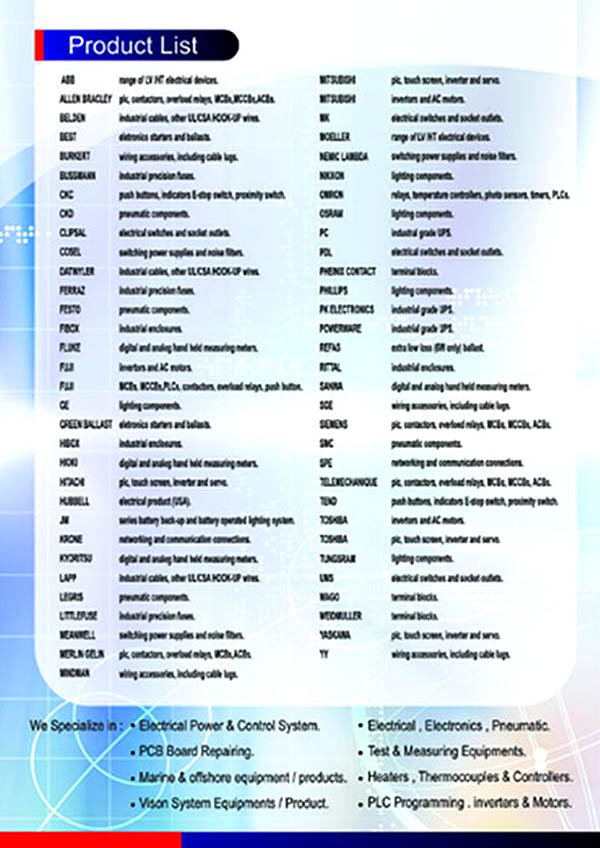 We are one of the electrical automation solution providers in Southeast Asia with our Industrial Automation.Since inception in year 2005, TRUSTECH ELECTRICAL AUTOMATION SDN BHD. has established itself as an active automation Product Distributors and providing Automation solution,Electrical solution and Application for Manufacturing industries & Machine OEM.