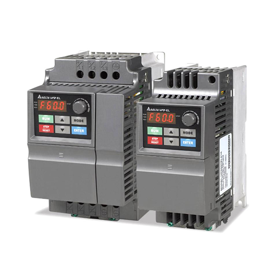 Multiple function new generation micro type AC drive. It has built in EMI filter, RFI switch, easy DC bus sharing for side-by-side installation, high precision current detection, overload protection, and a built in keypad.